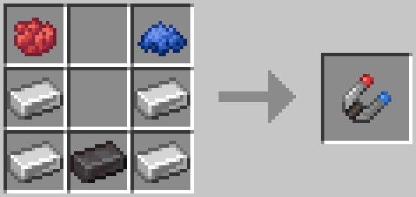 When held in your mainhand or offhand, the item magnet will pull any items within a 7 block radius towards you. This effect overpowers gravity, allowing items that are falling to also move towards you to be picked up.